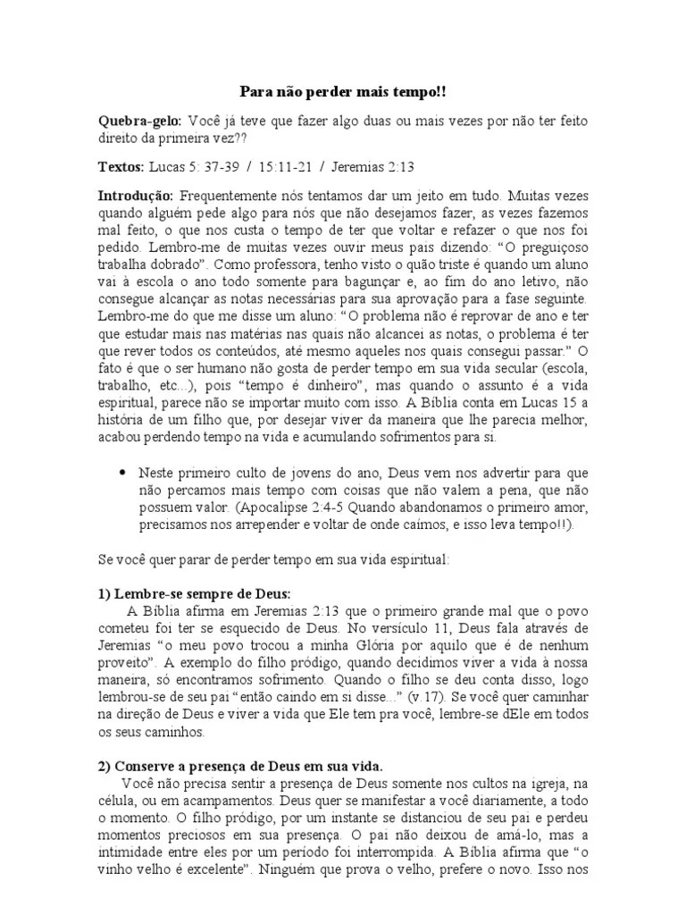*uma ideia para quem vai preparar uma palavra para os jovens é mostrar uma ferramenta criada para a mobilização da igreja:. A nação inteira estava vivendo em fragrante desobediência a deus. Se quiser ter acesso a mais mensagens, esboços e estudos para jovens clique aqui introdução não era fácil ser jovem nos dias de daniel. 05.02.2013 · esboço de pregação para jovens pregação:. O desejo pelo céu e pela verdade motiva alguém a se purificar (mateus 13: